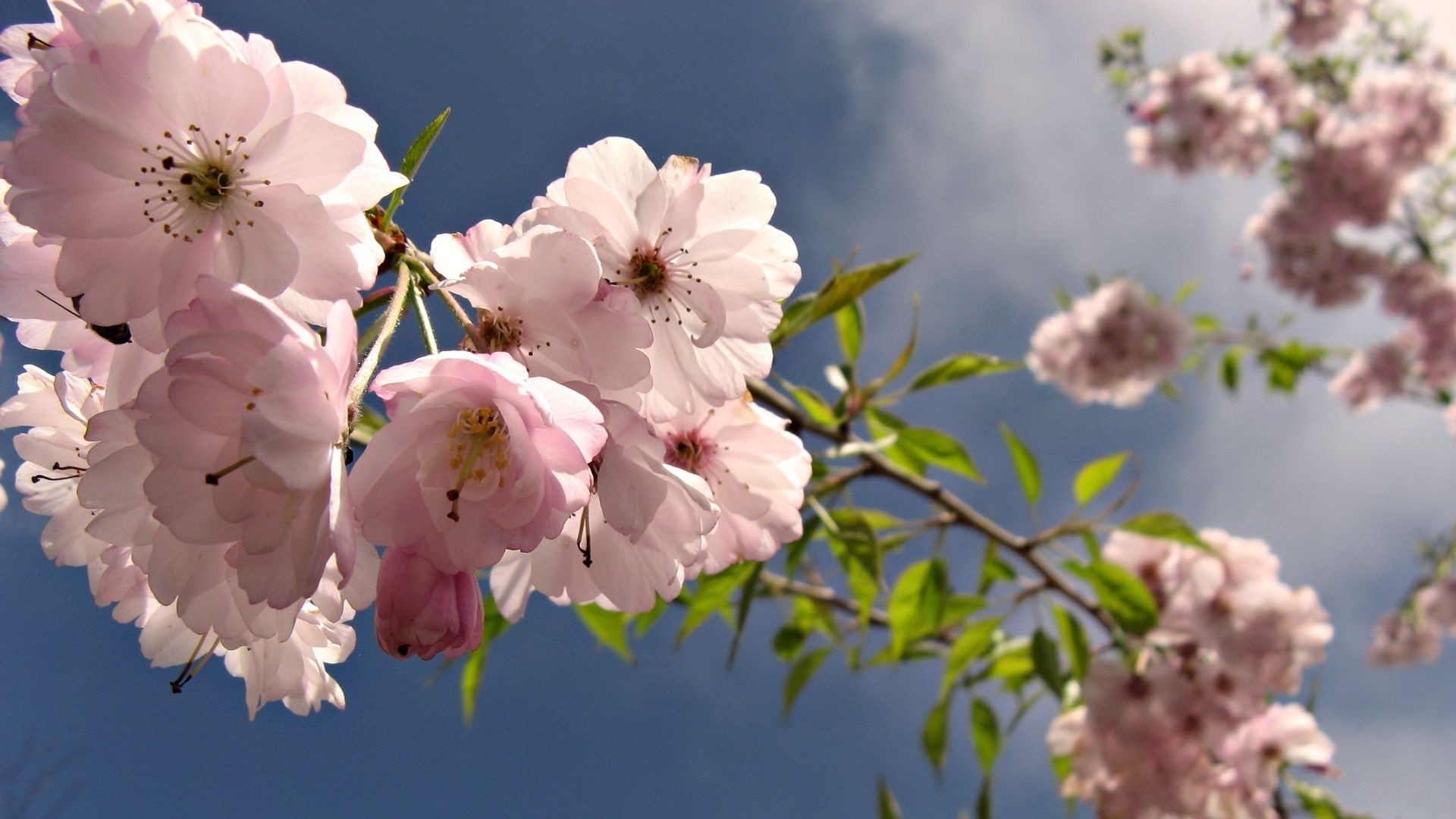 Um arbusto de flores cor-de-rosa perto de uma grande cachoeira