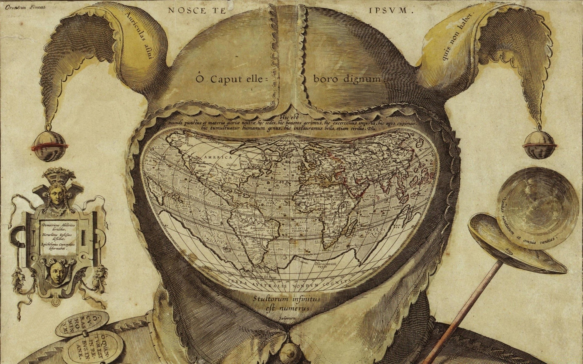 Ilustração retro da cabeça com um mapa em vez de um rosto