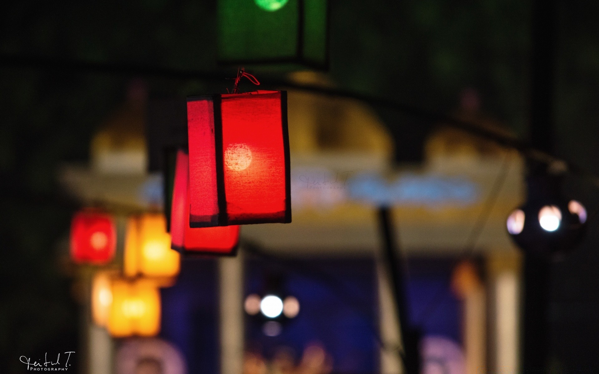 Iluminação da rua com lâmpadas coloridas