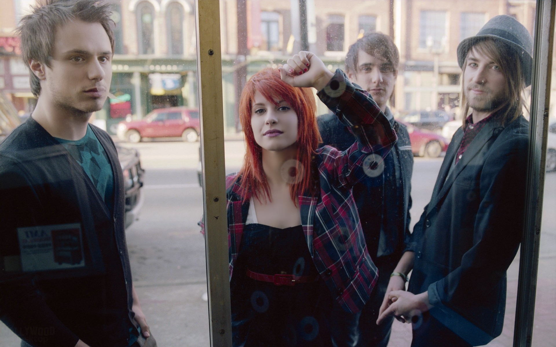 Menina com cabelo flamejante na rua