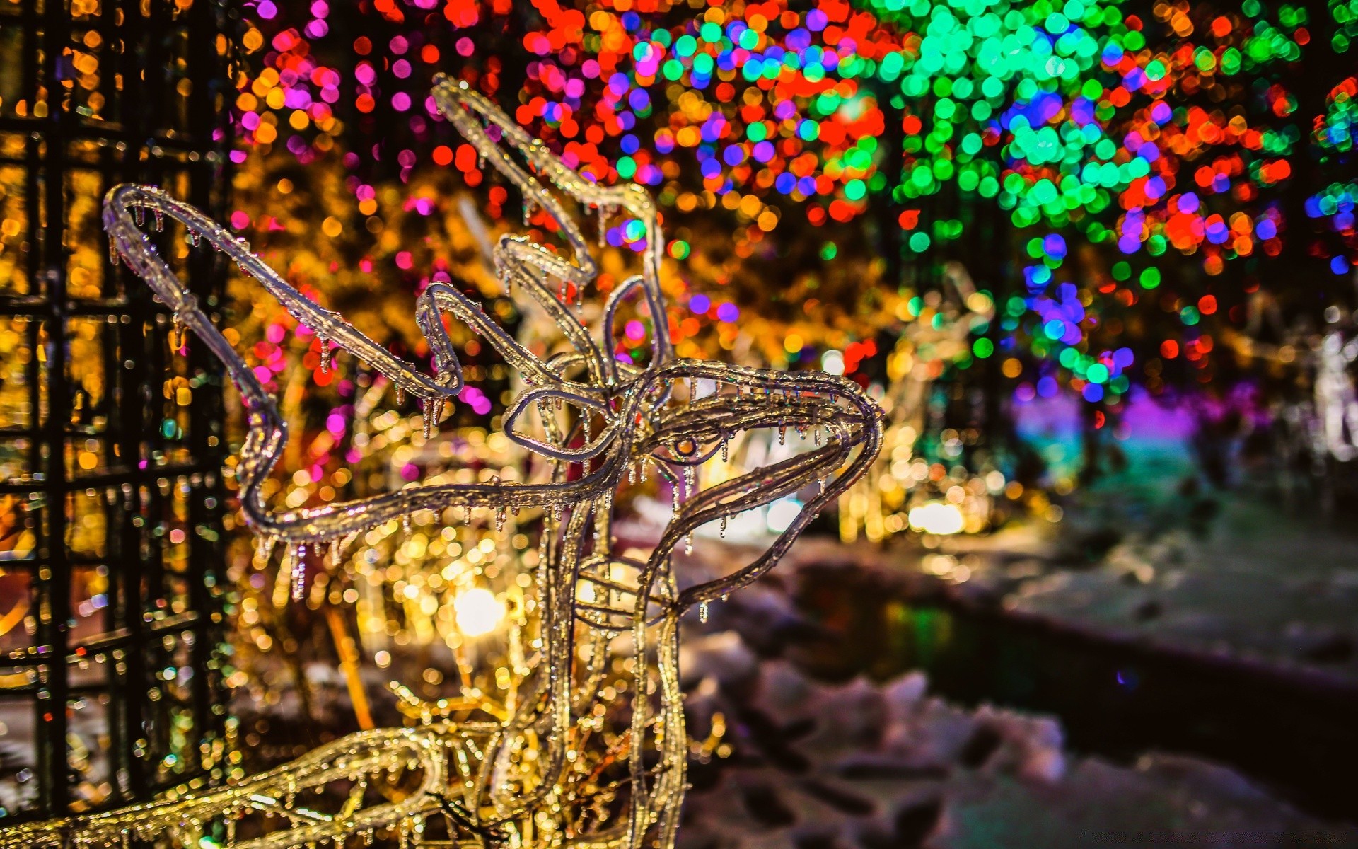 Decoração de rua de Ano Novo em fundo desfocado
