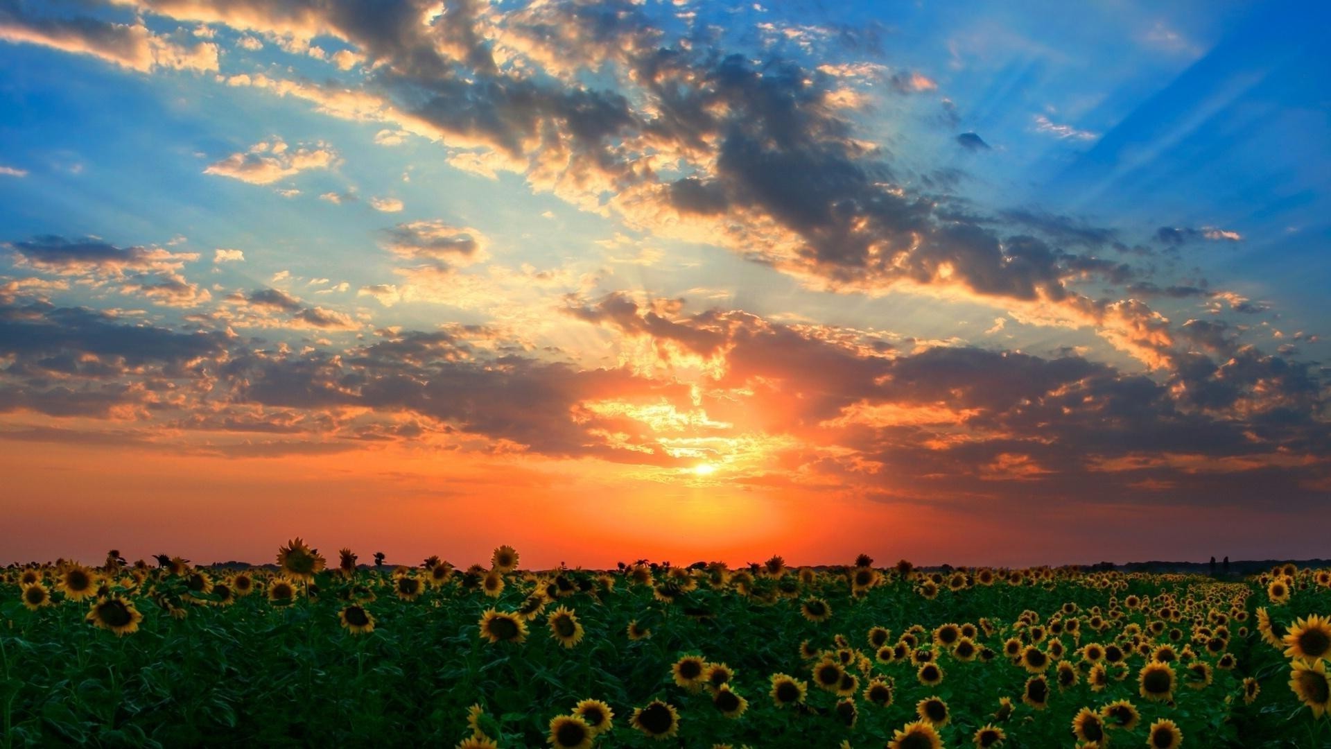 Girassol no campo ao pôr do sol