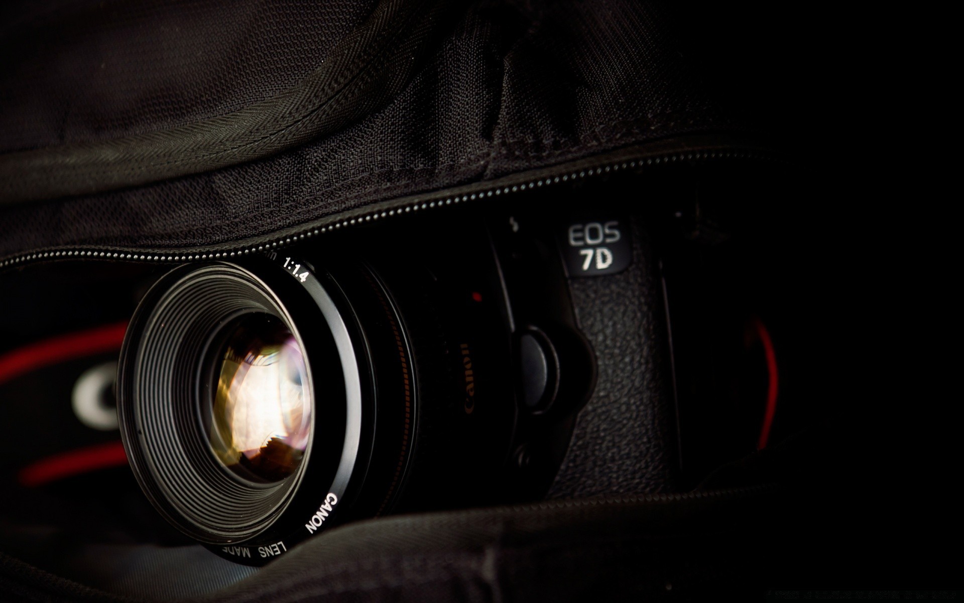Lente de câmera no saco aberto