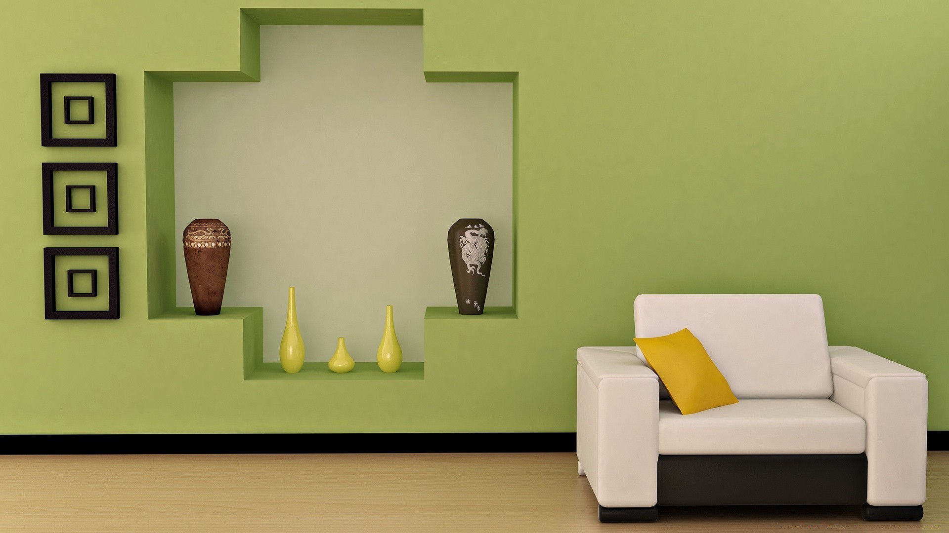 Excelente interior moderno da sala. Móveis mínimos, excelente cor