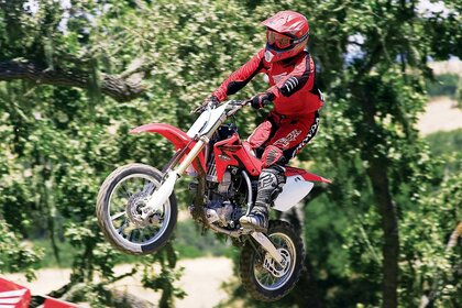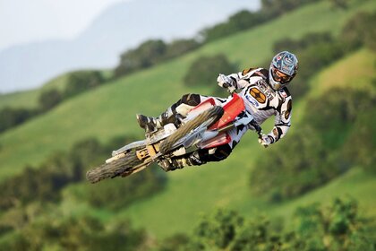 O perigoso salto de um motociclista entre as árvoresO perigoso salto de um motociclista entre as árvores