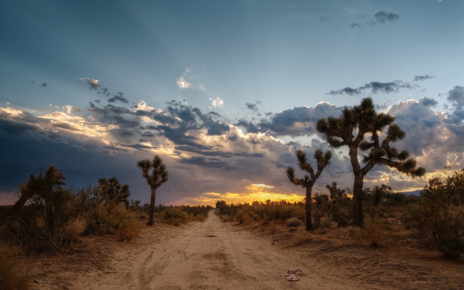 Belo céu sobre uma estrada no deserto