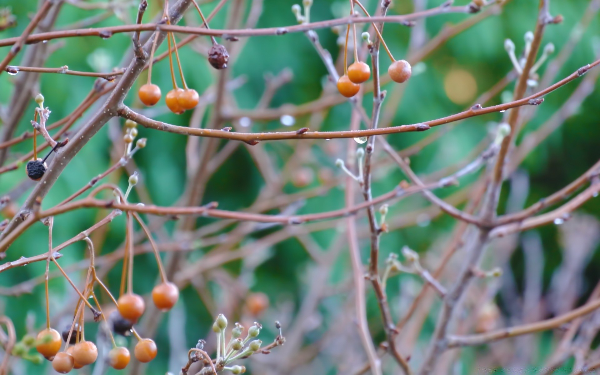 Ramos sem folhas com bagas secas restantes