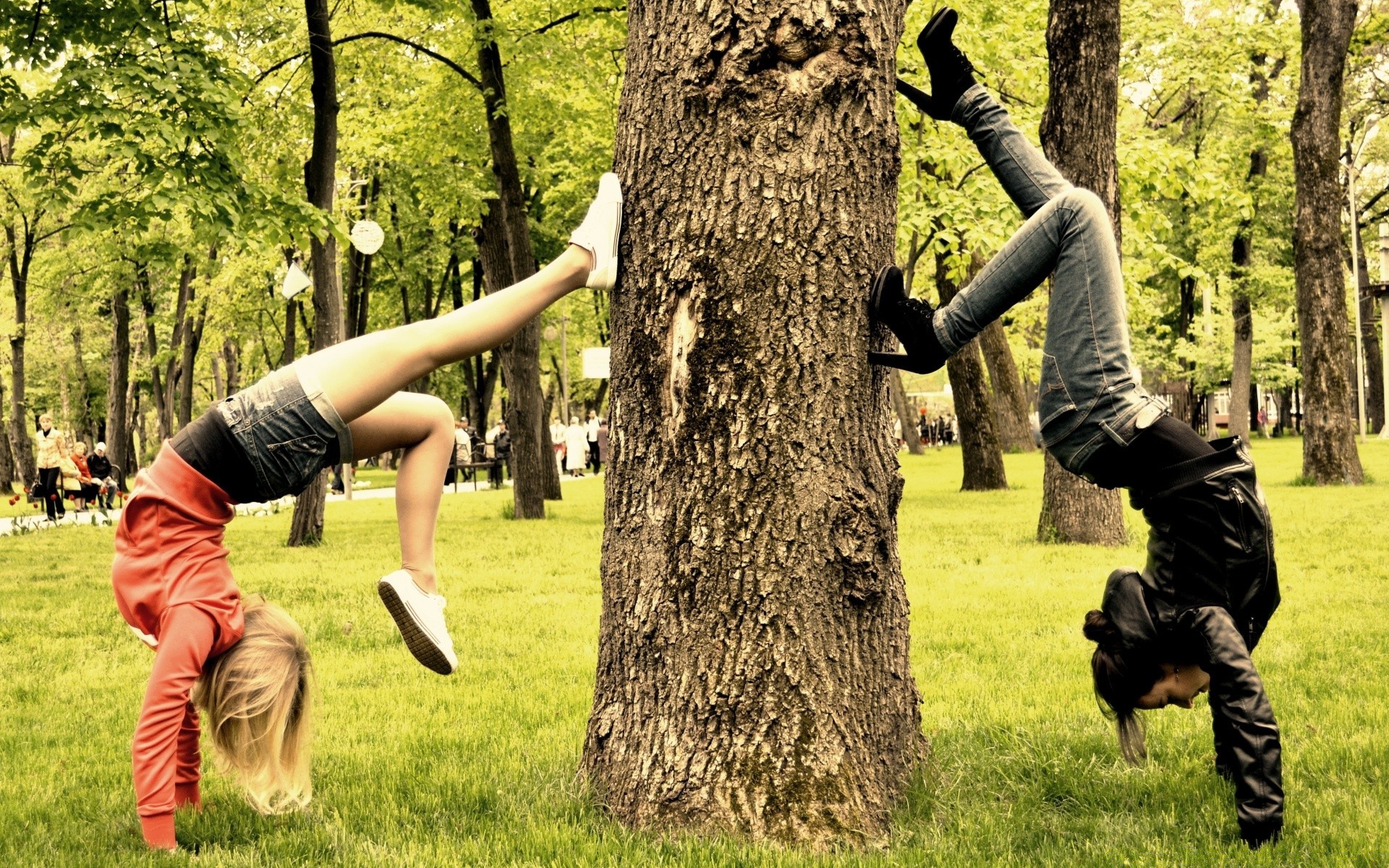 Meninas fazendo esportes no parque