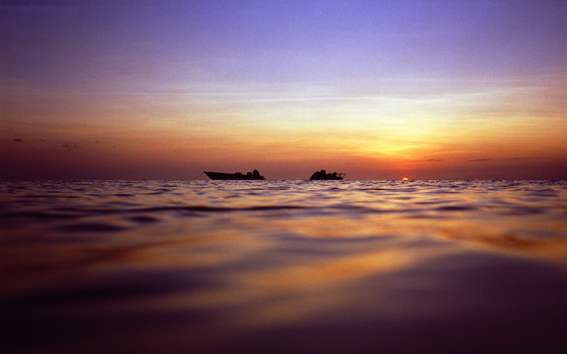 Nuvens púrpura em todo o céu, transformando-se em vermelho e laranja