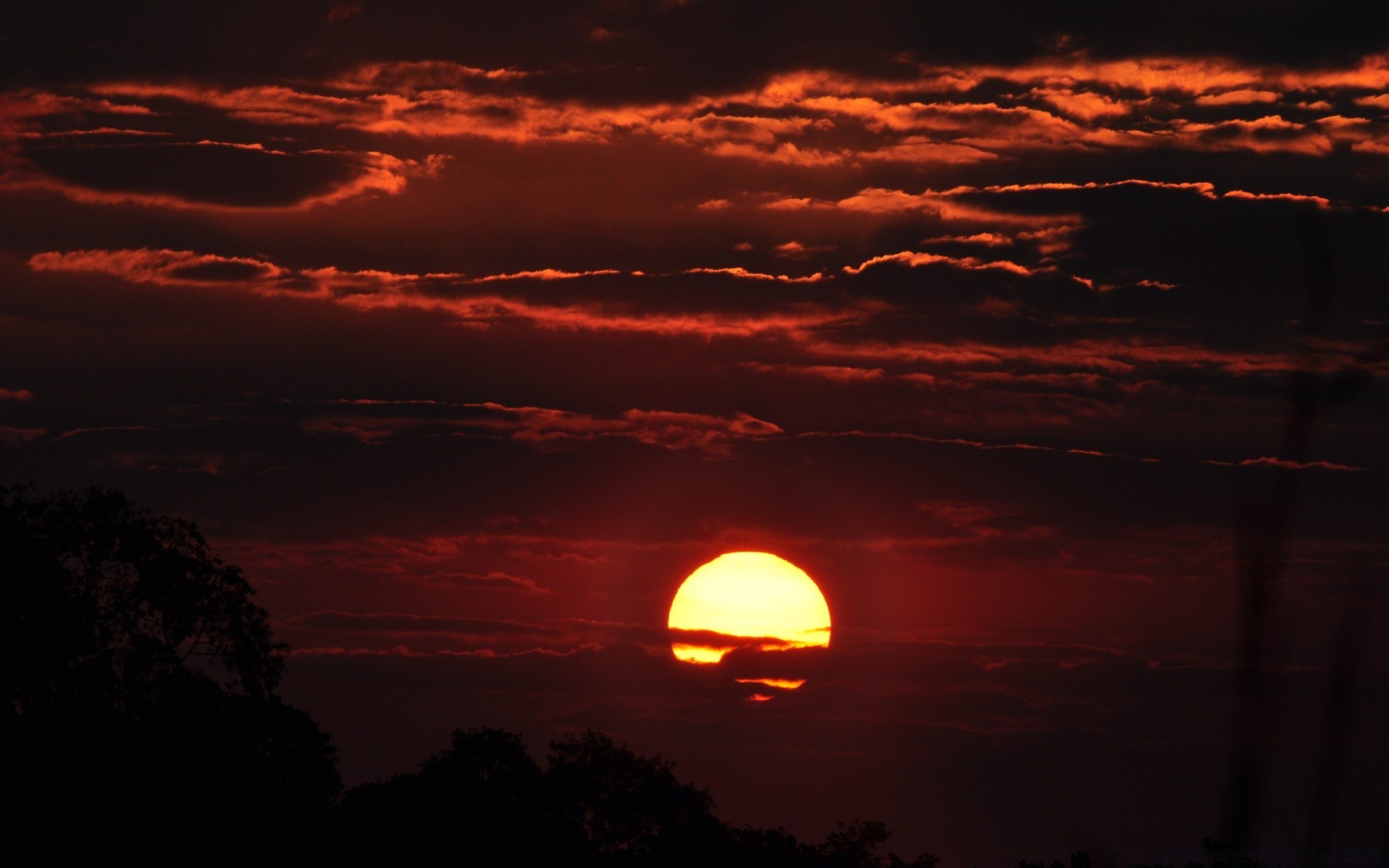 O pôr do sol se esconde atrás dos telhados escuros das casas em um céu laranja brilhante