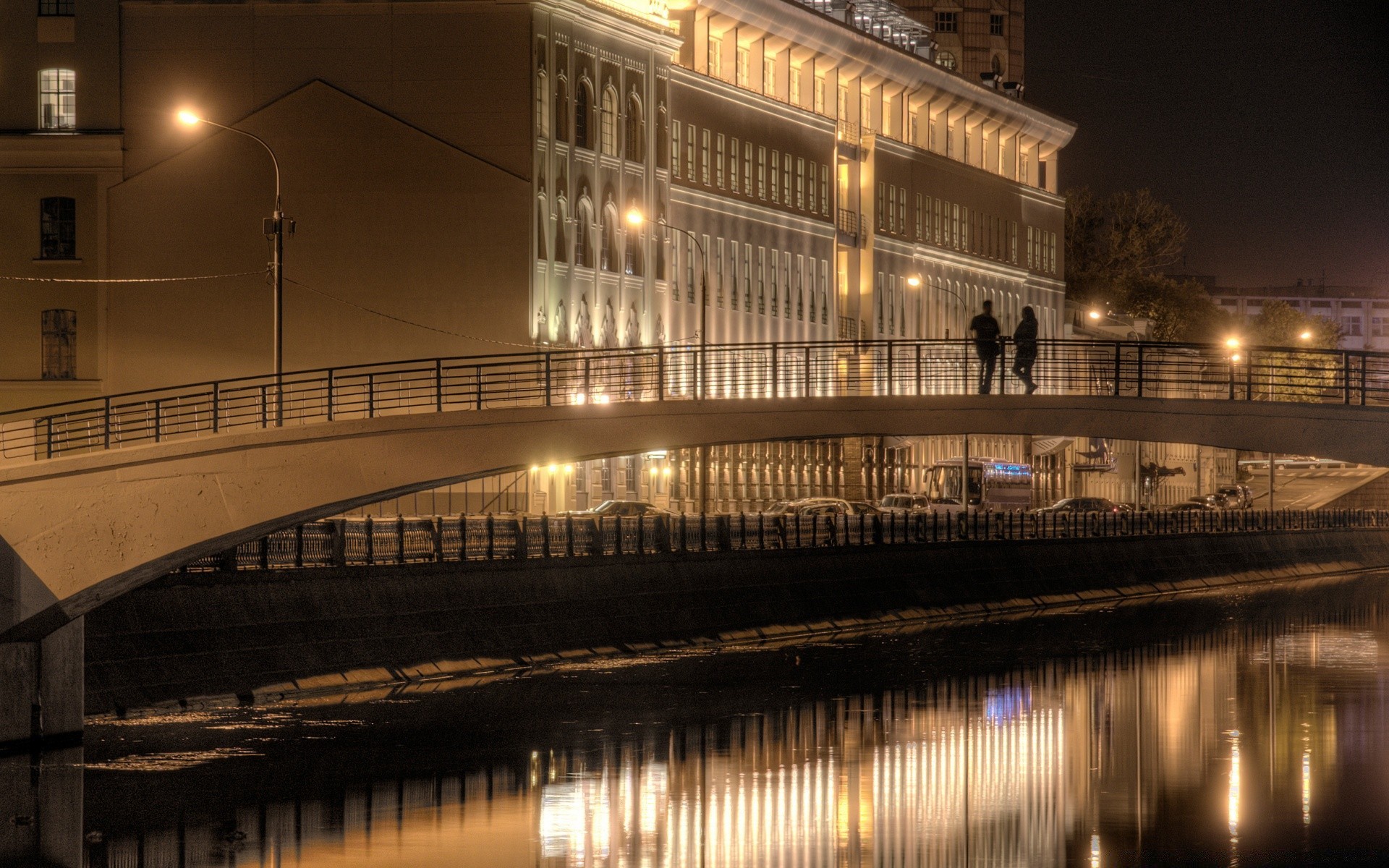 Um monumento na forma de uma cauda de peixe de prata sobressai do rio contra o pano de fundo da lua poente e da cidade noturnaUm monumento na forma de uma cauda de peixe de prata sobressai do rio contra o pano de fundo da lua poente e da cidade noturna