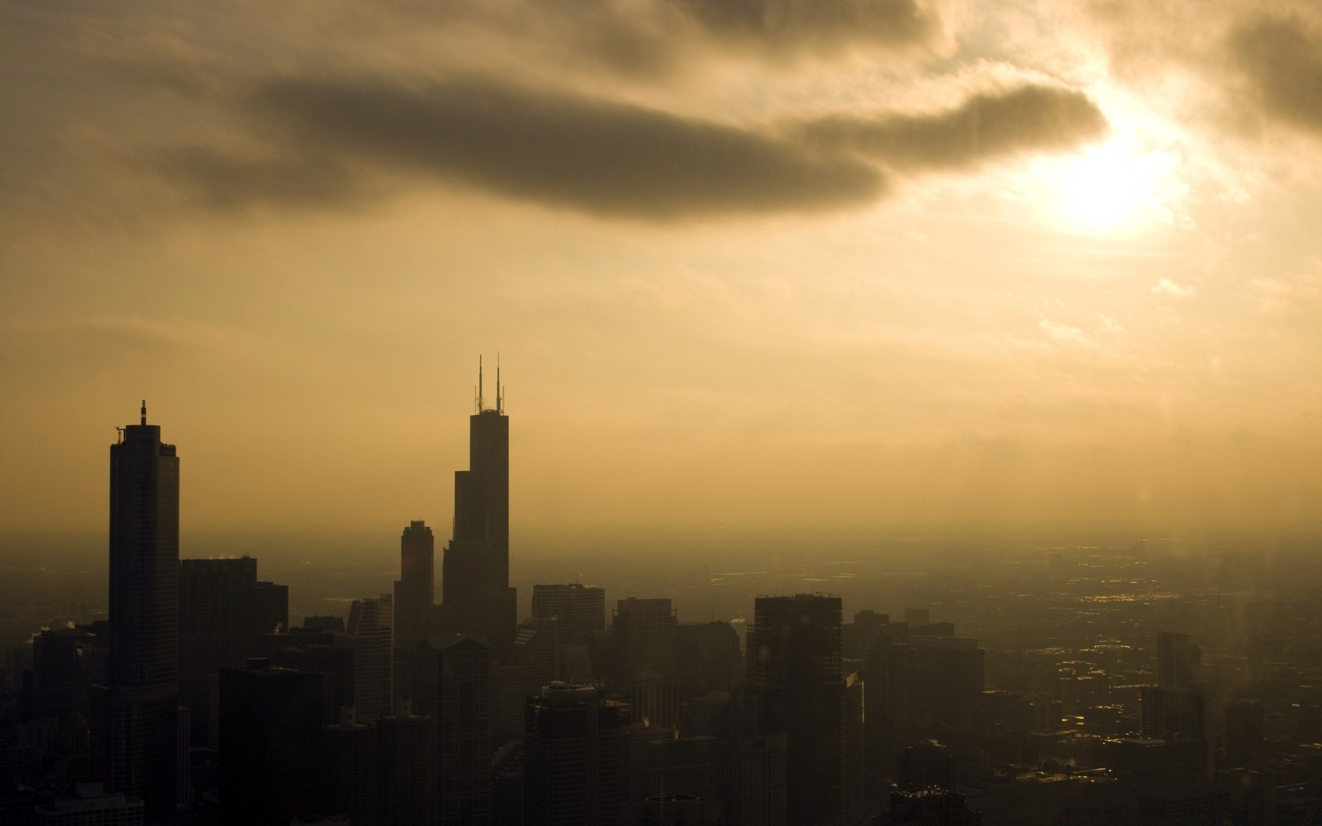 Pôr do sol sobre a cidade escura