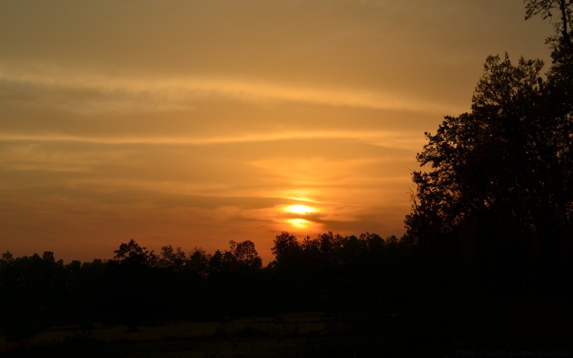 Silhuetas de árvores e o sol poente