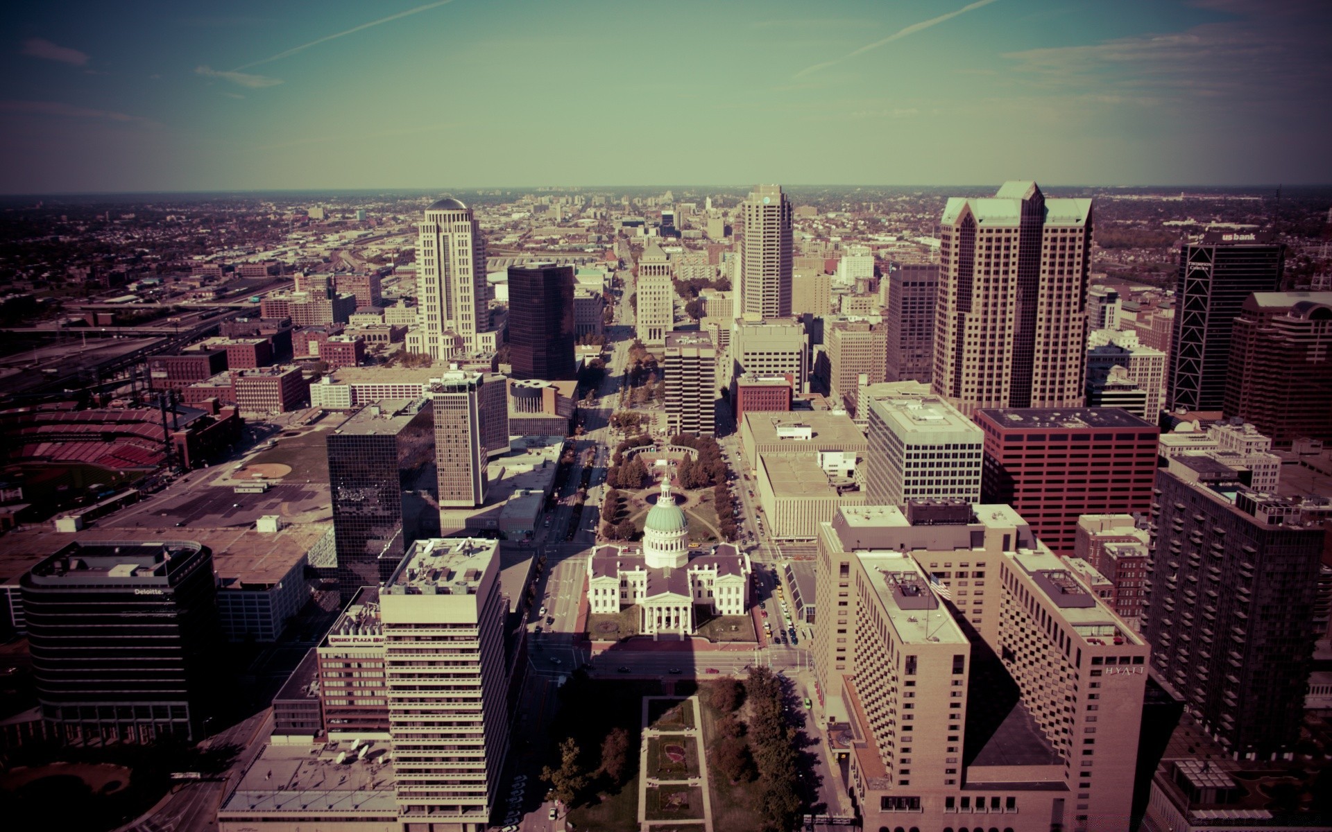 A cidade é lotada, boa arquitetura, luz das luzes e azul da água