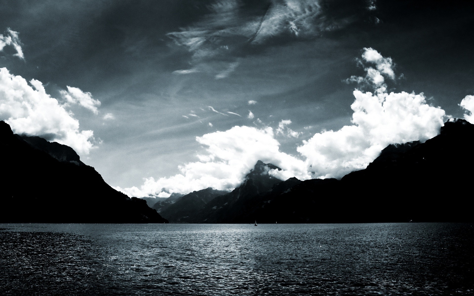 Tranquilidade do pôr-do-sol sobre a água. O mar na escuridão