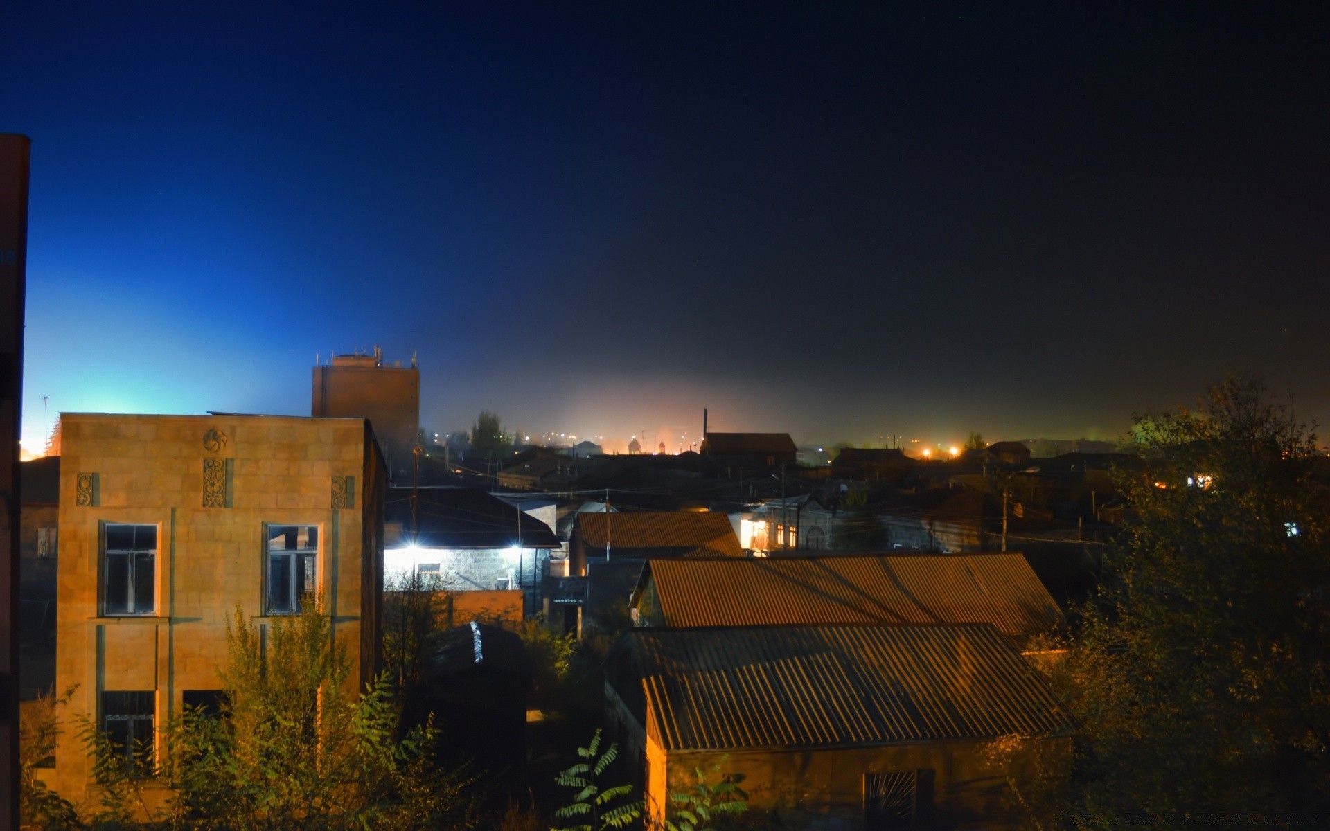 Céu escuro sobre a cidade noturna