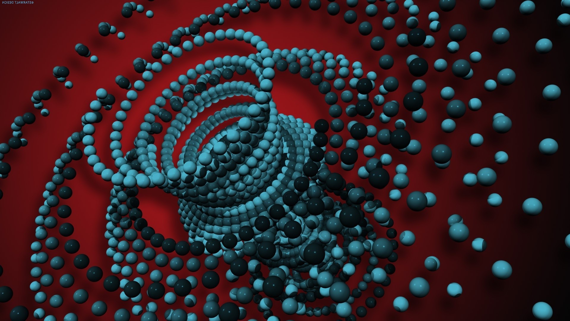 Grânulos azuis abstratos sobre fundo vermelho