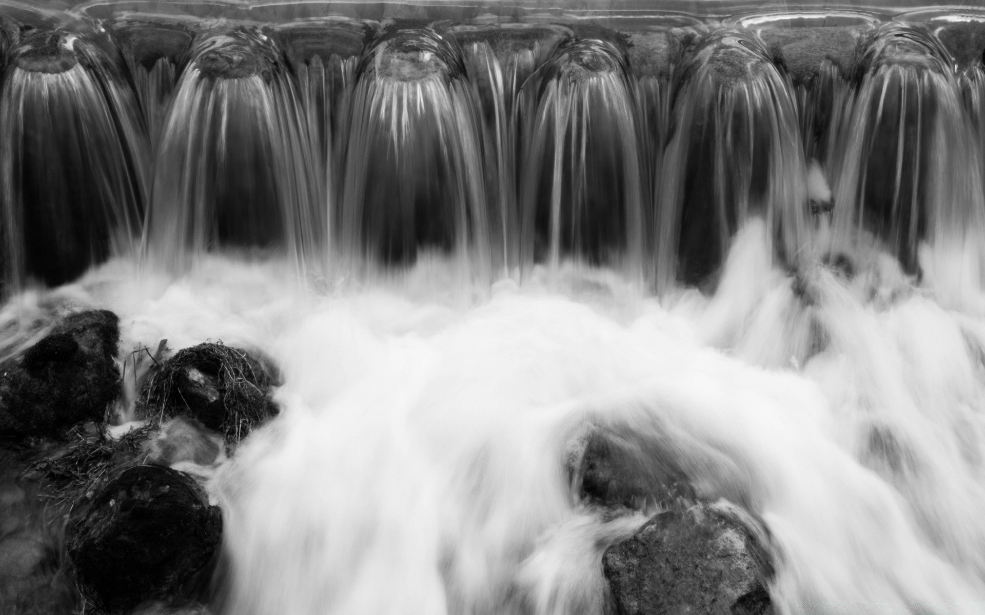 Cachoeira e névoa em preto e branco