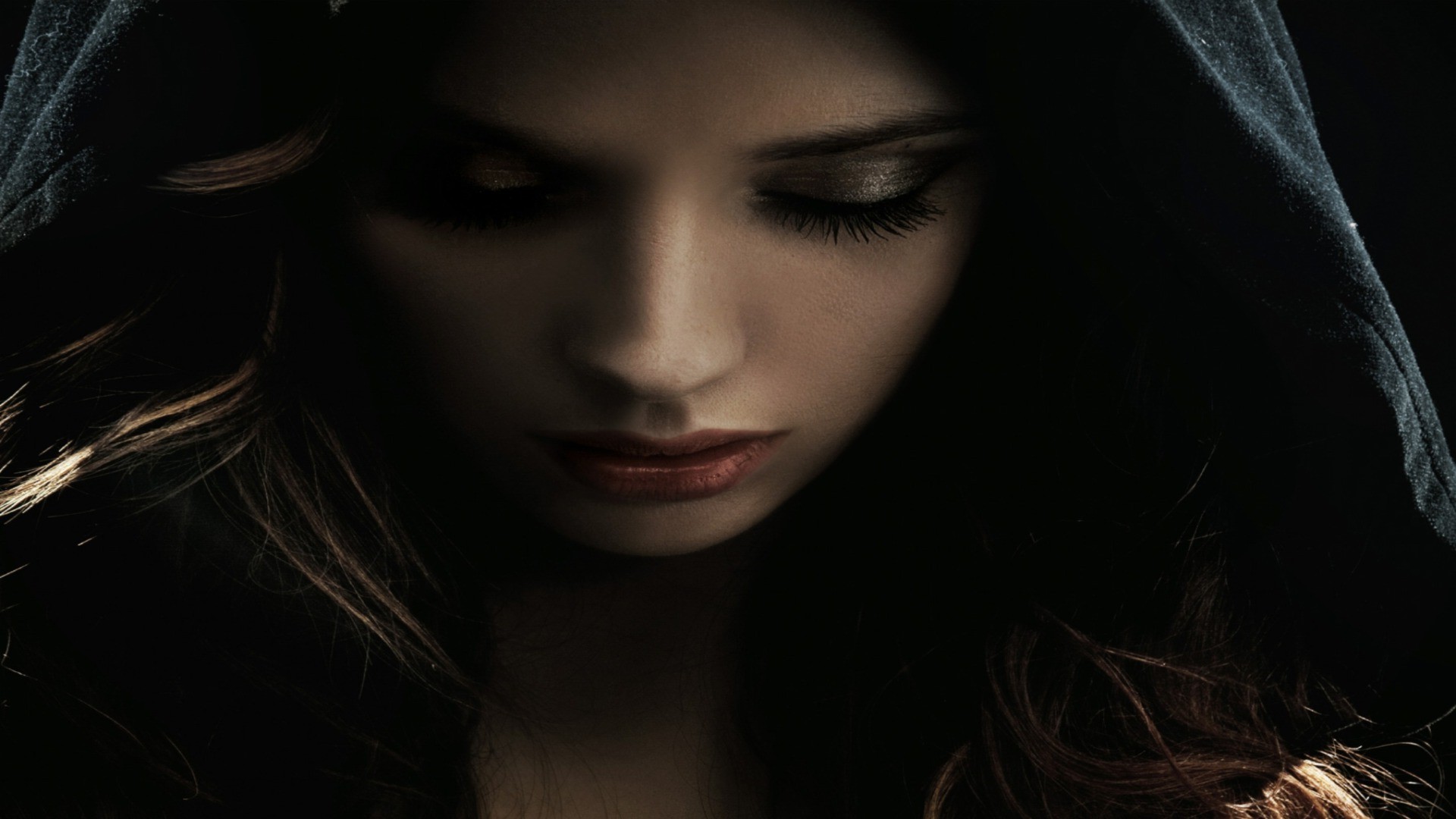 Rosto astuto em um fundo escuro para a área de trabalhoRosto astuto em um fundo escuro para a área de trabalho