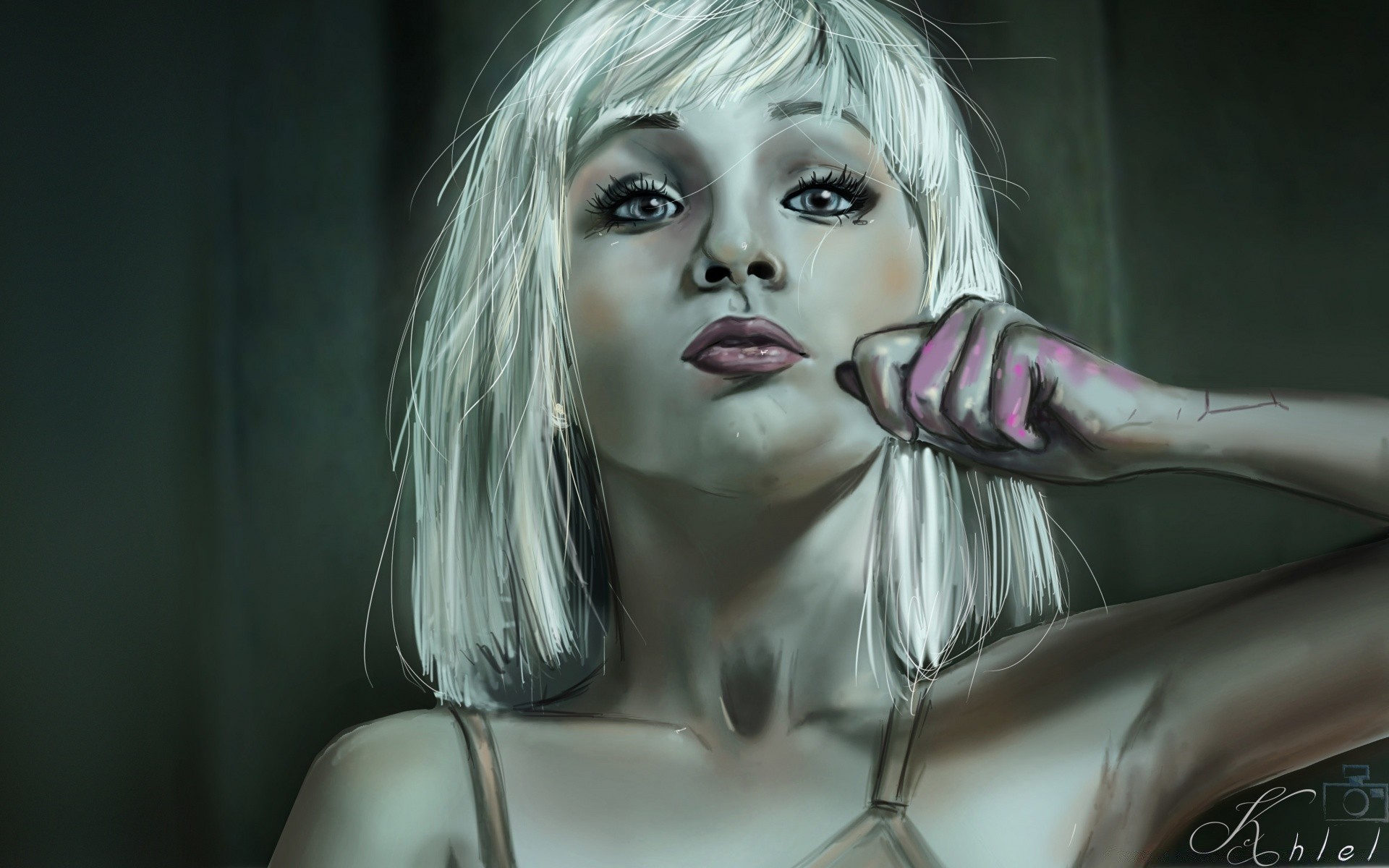 Ilustração de menina com cabelo branco-cara