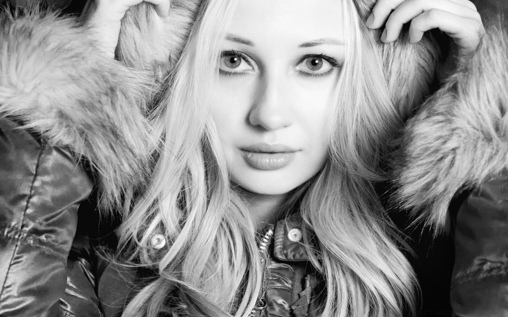 Retrato preto e branco de uma mulher