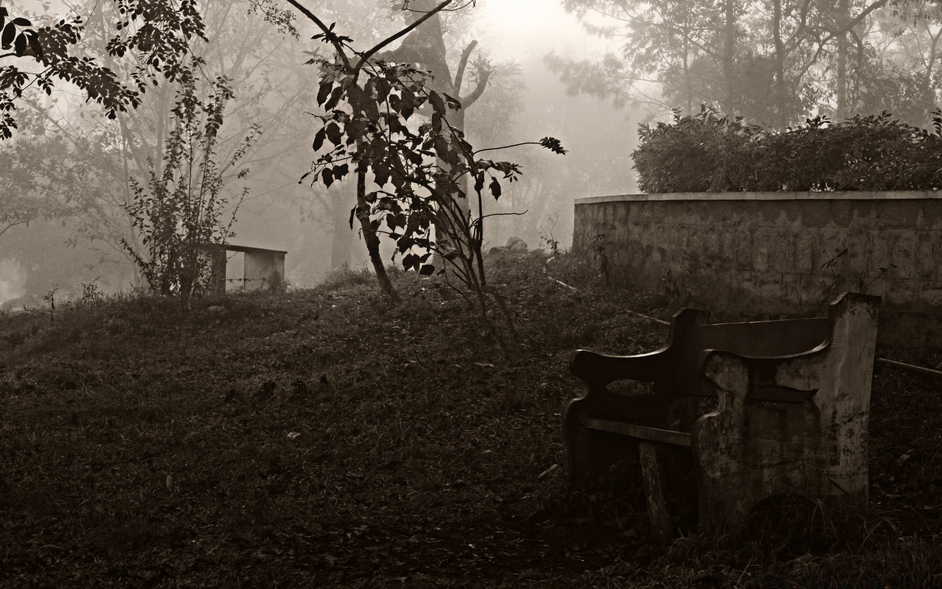 Fotos de montanhas no nevoeiro no fundo do pôr do sol