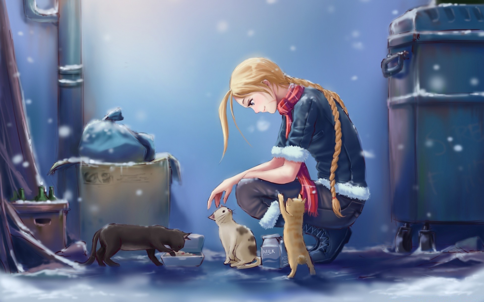 Menina com osso brincando com gatinhos