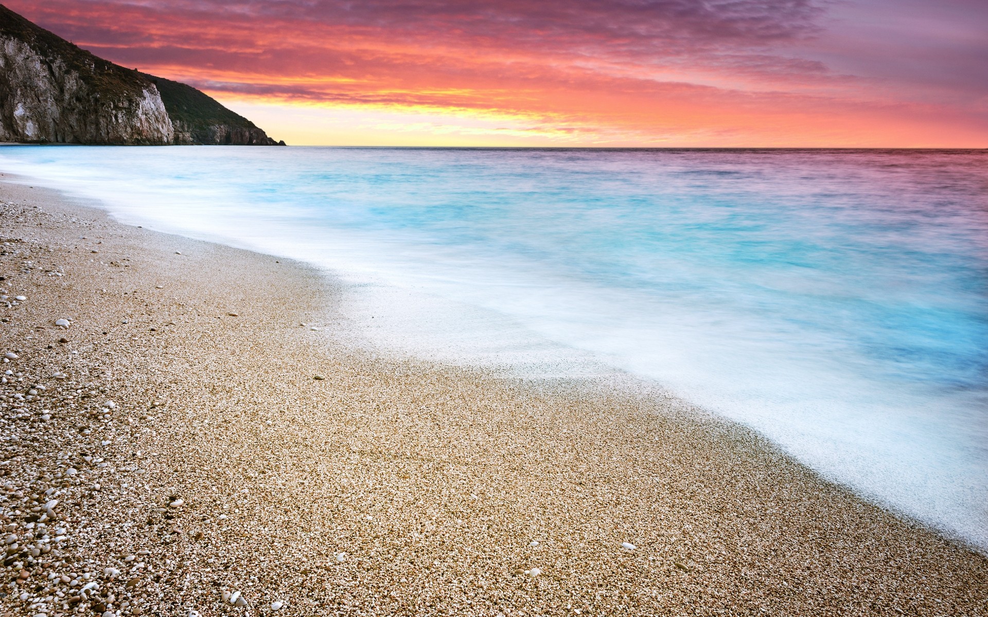 Mar e praia no verão ao pôr do sol