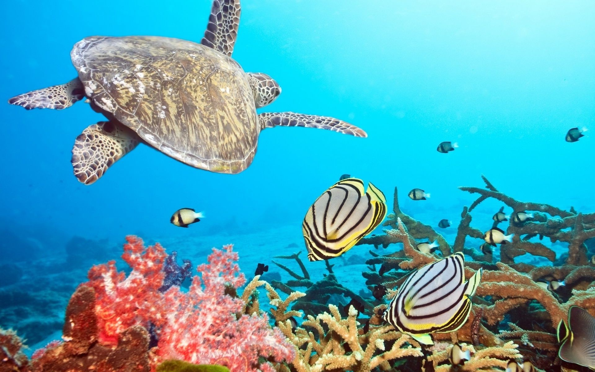 Uma cidade sobre uma tartaruga voadora no céu azul