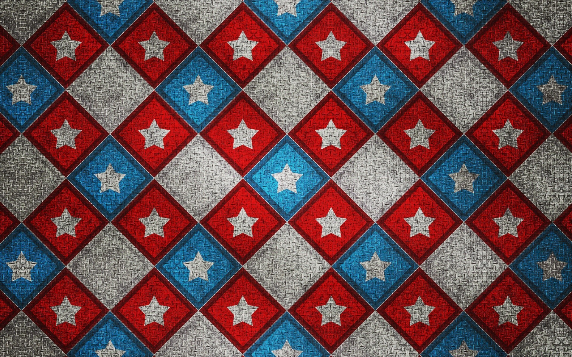 Ornamento de quadrados vermelhos, brancos e azuis e estrelas