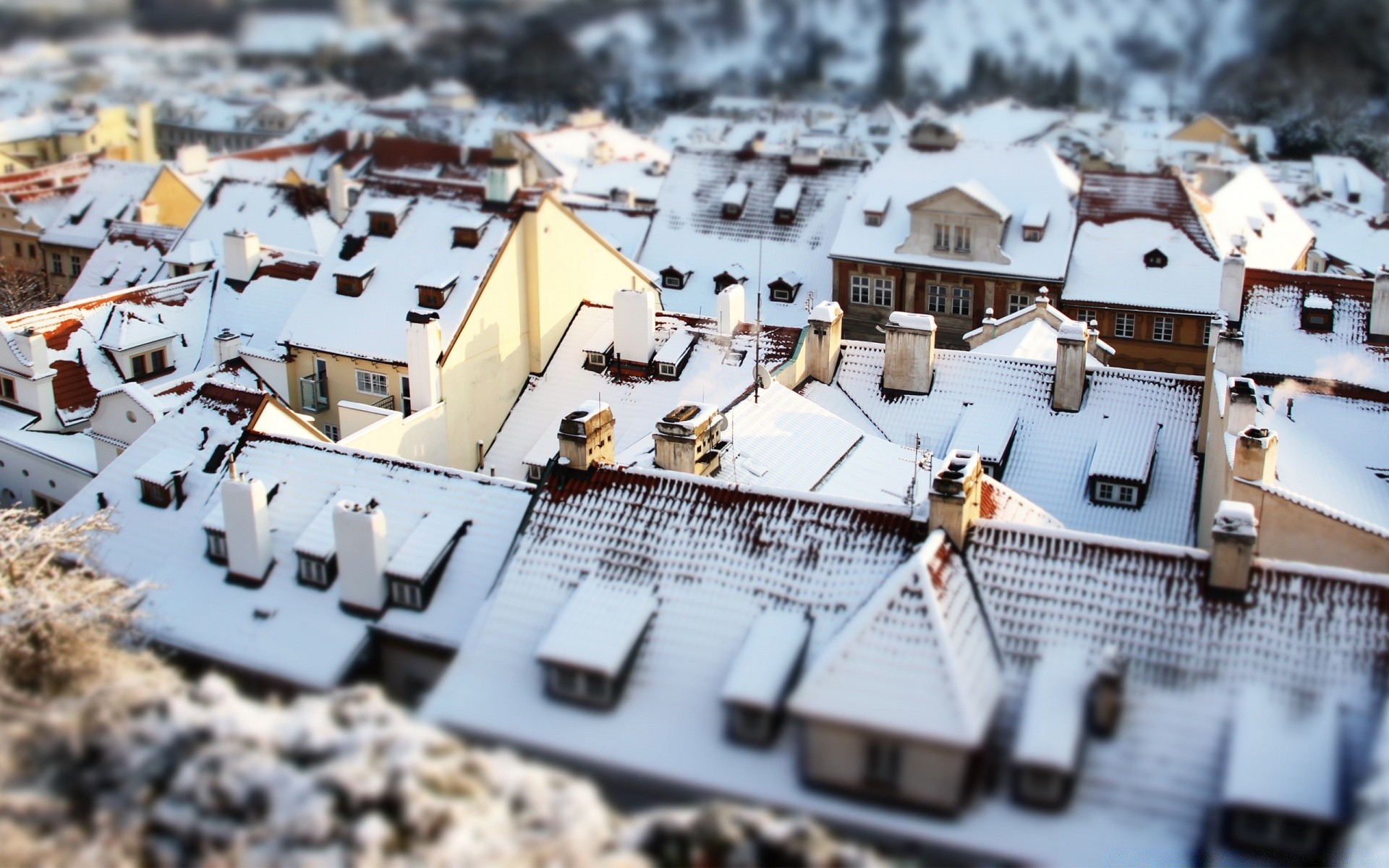 Neve de inverno nos telhados de casas ar limpo