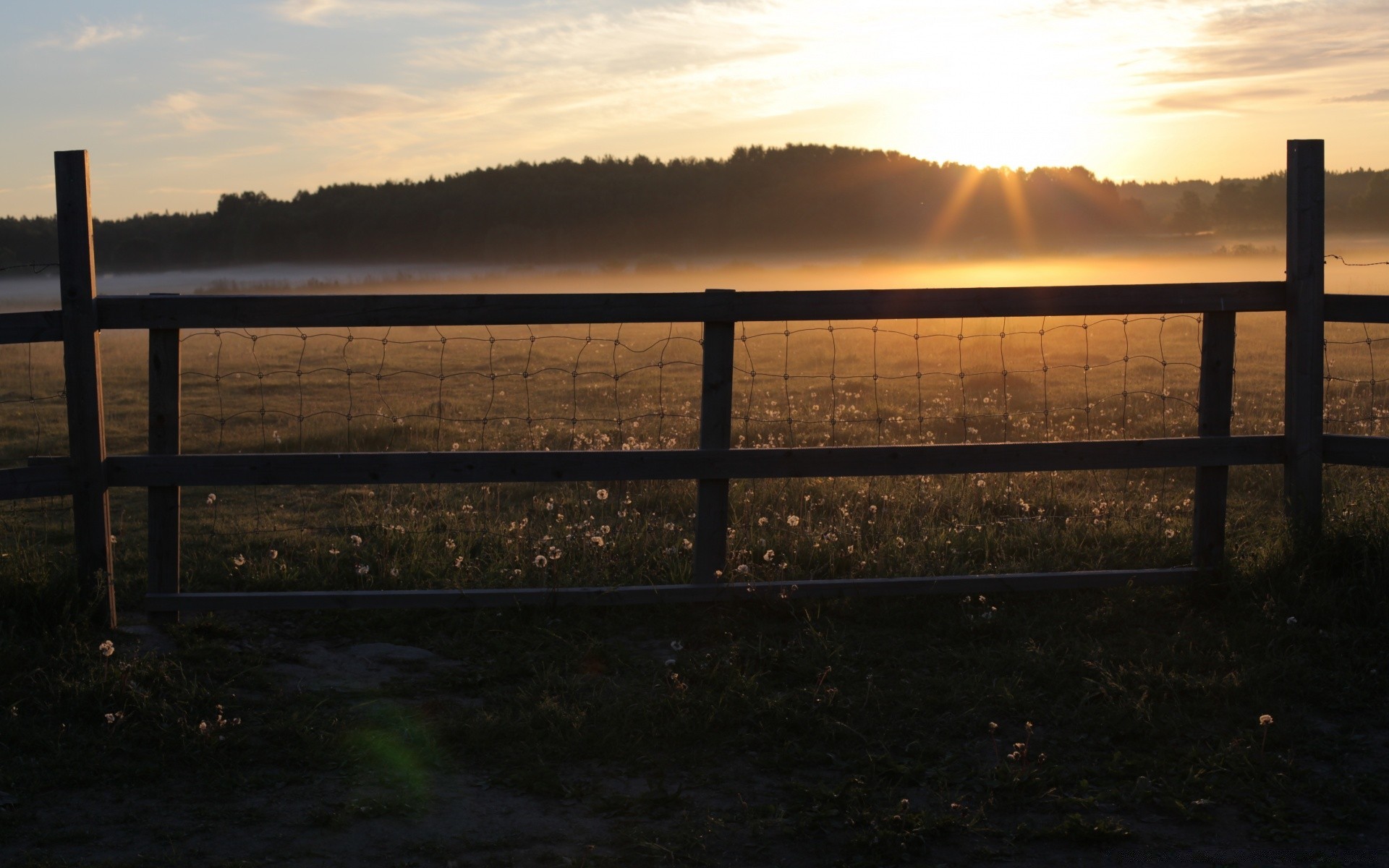 Amanhecer e ordem na água e cerca