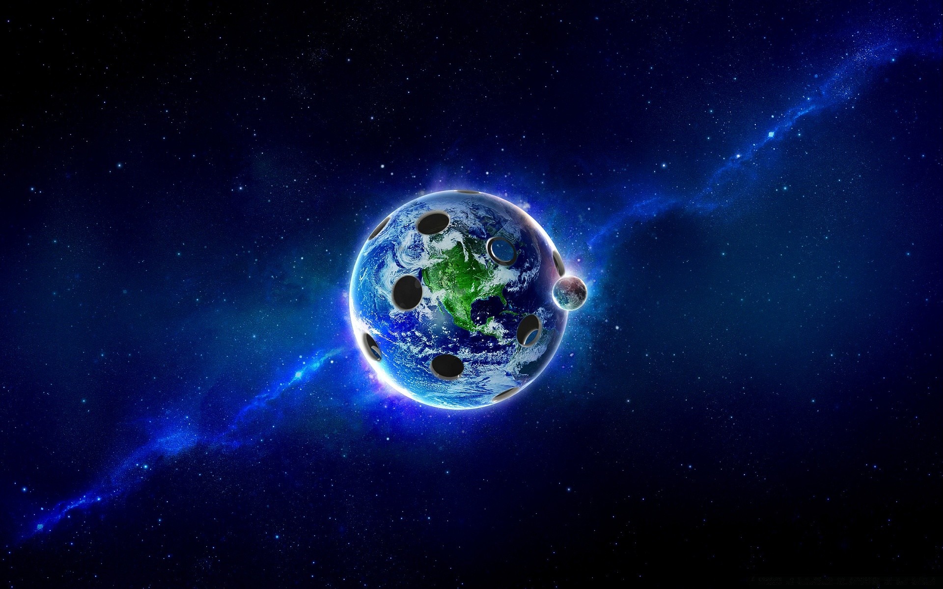 O planeta Terra em torno de uma estrela e o nevoeiro