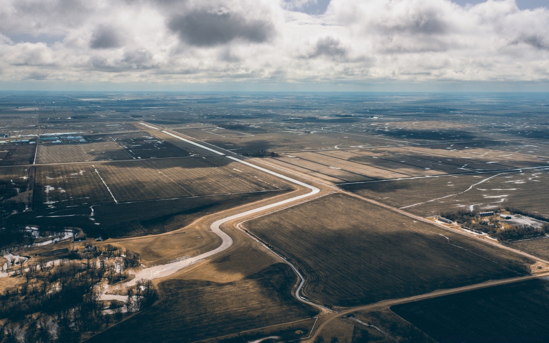 Vista da terra com estradas e campos de avião