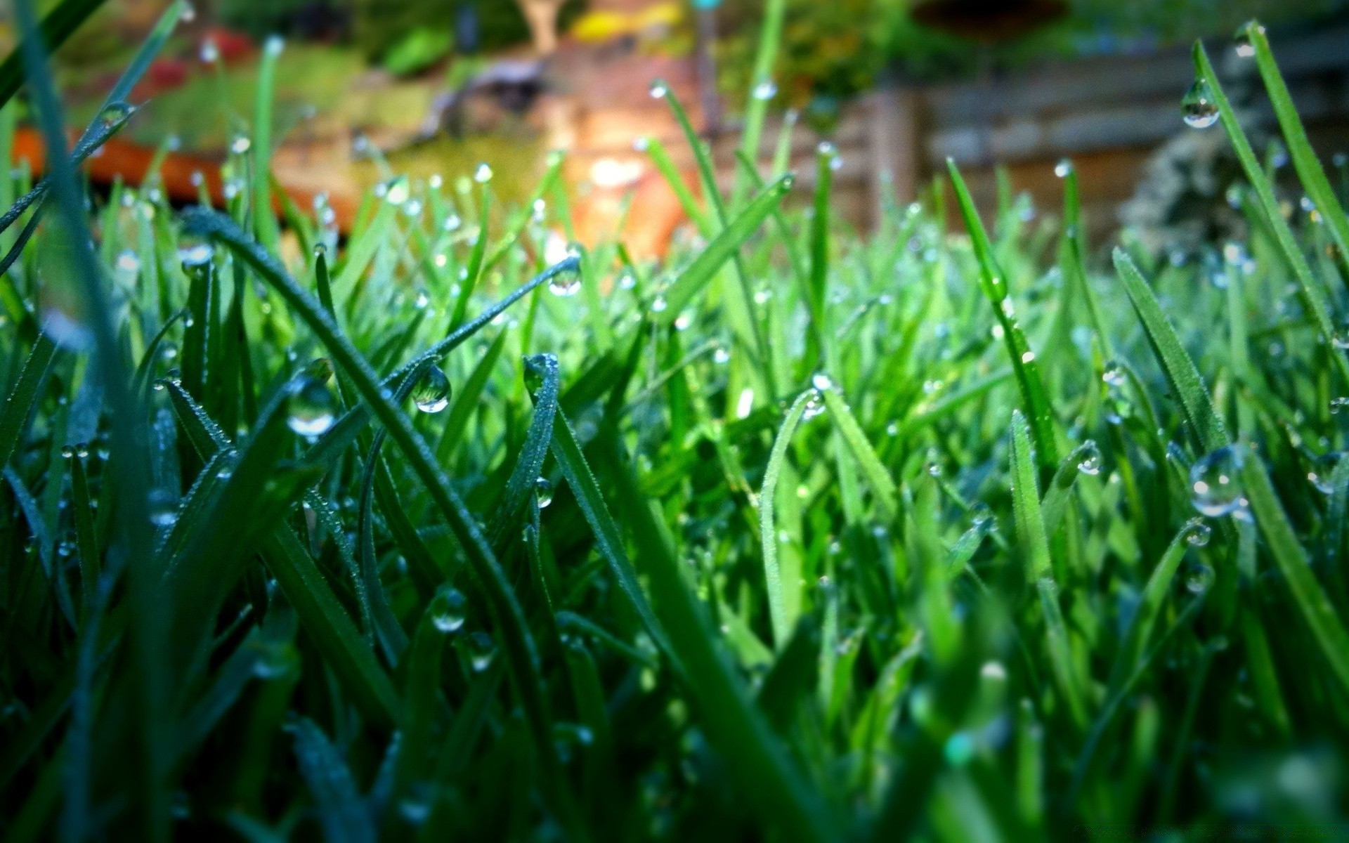 Grama do gramado com orvalho