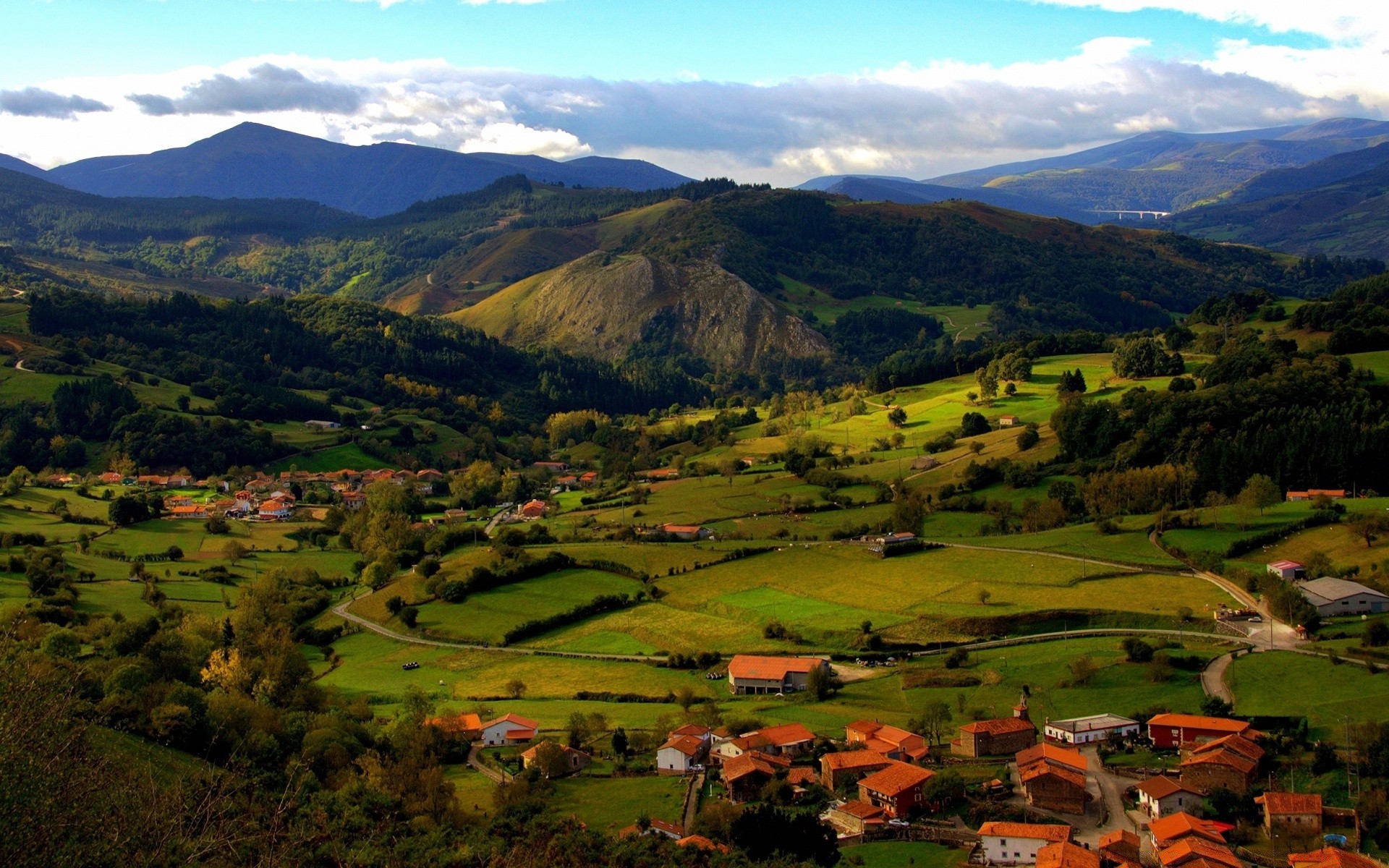 O sol inundou a clareira entre os Posso suas montanhas escuras