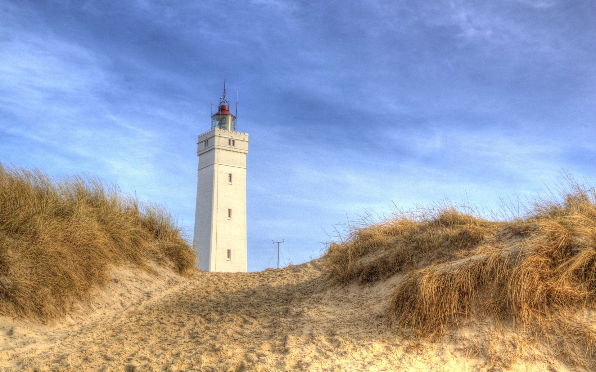 Farol alto na costa arenosa