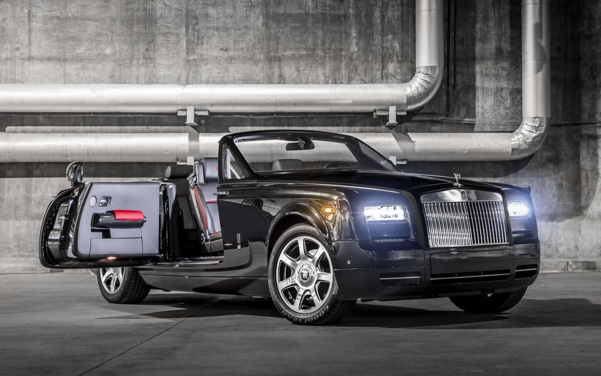 O carro de bentley na estrada dirige em contra encontrou o transporteO carro de Bentley na estrada dirige em contra encontrou o transporte