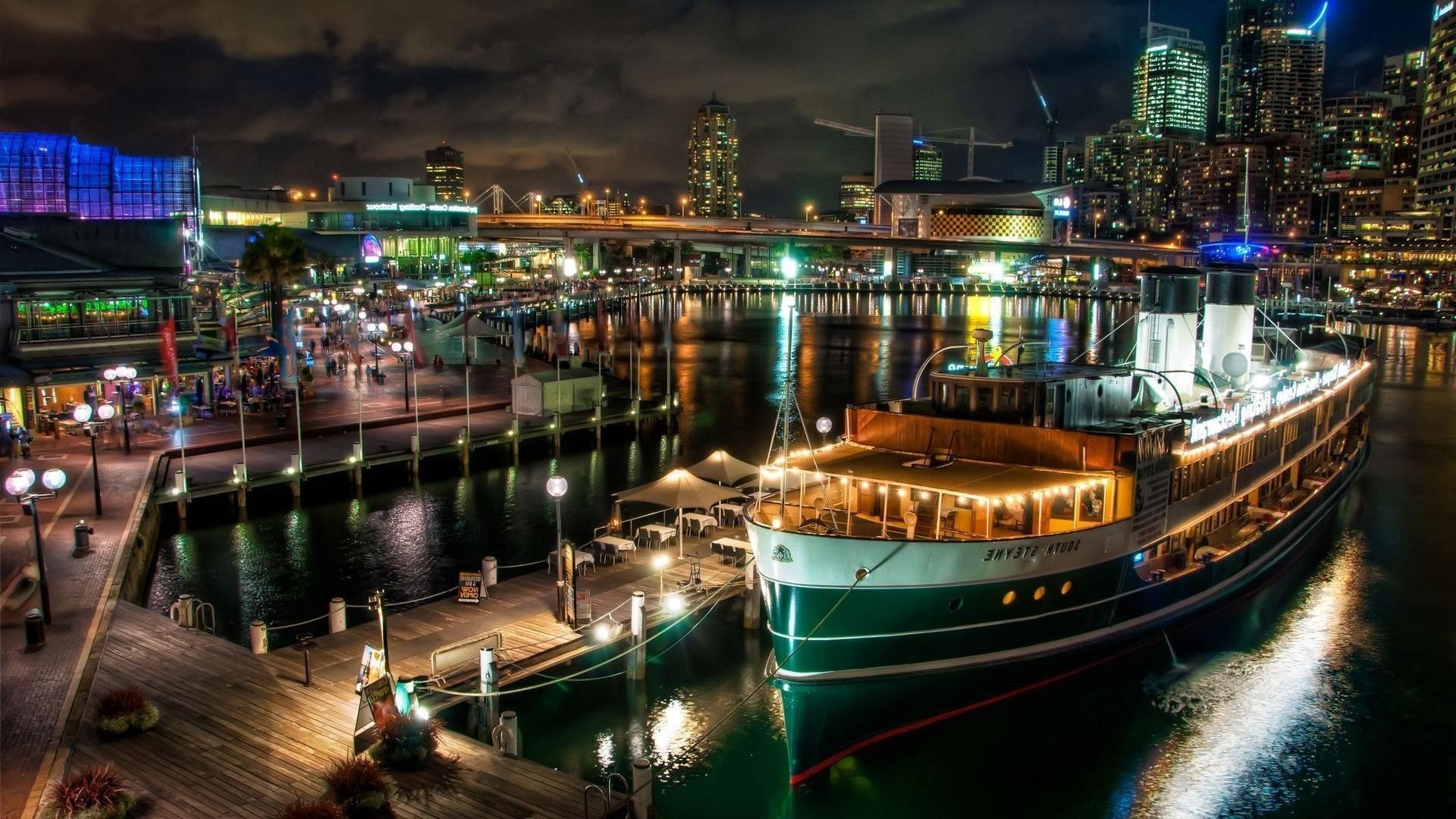 Titanic no porto nas luzes da noite