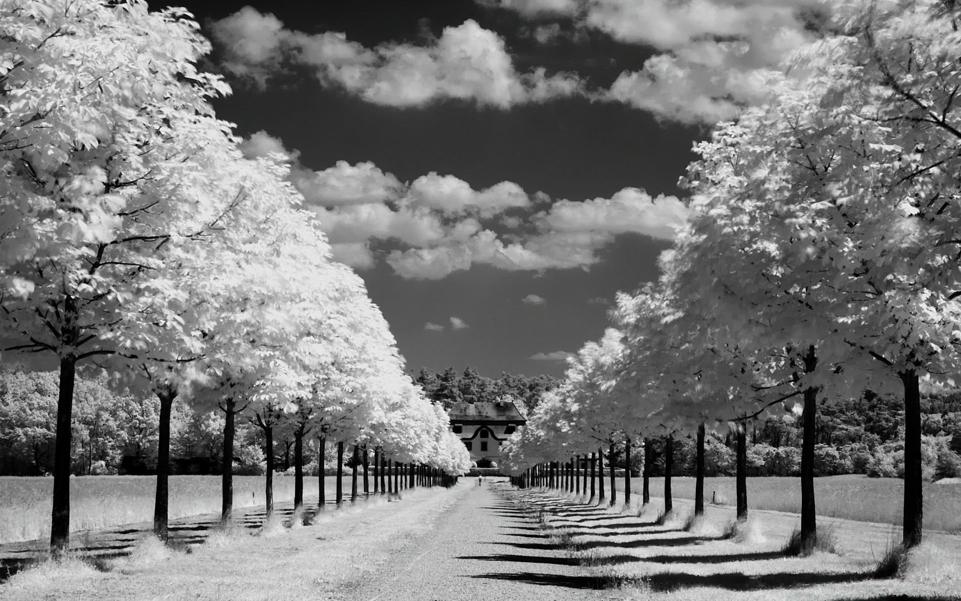 Paisagem Preto e branco da Avenida das árvores