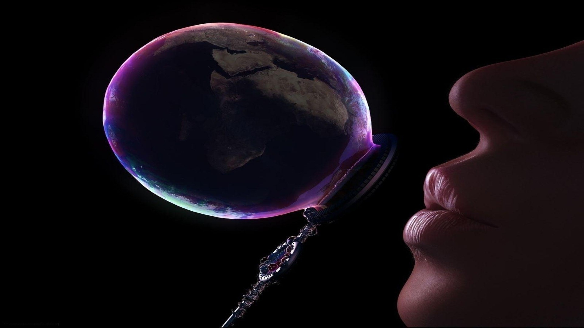 Filme Guardiões. Paisagem pós-apocalíptica em tons de azul. Super-heróis