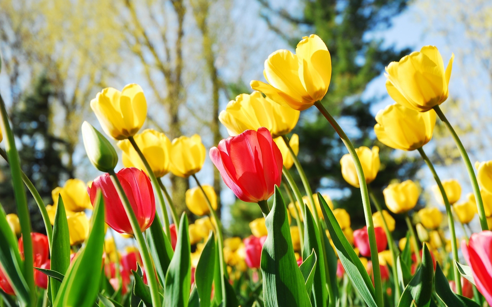 Flores roxas amarelas ao lado de pedras no sopé da montanha contra o fundo de uma nuvem não enevoada