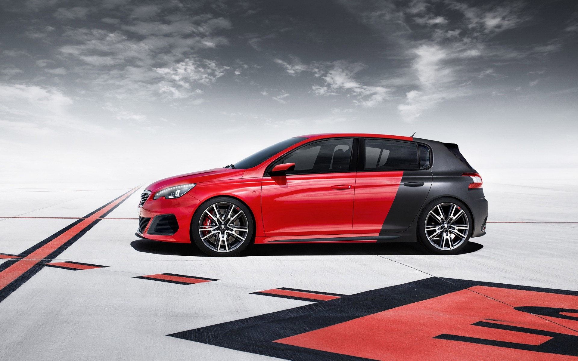 Carro preto e vermelho se move em direção às nuvens