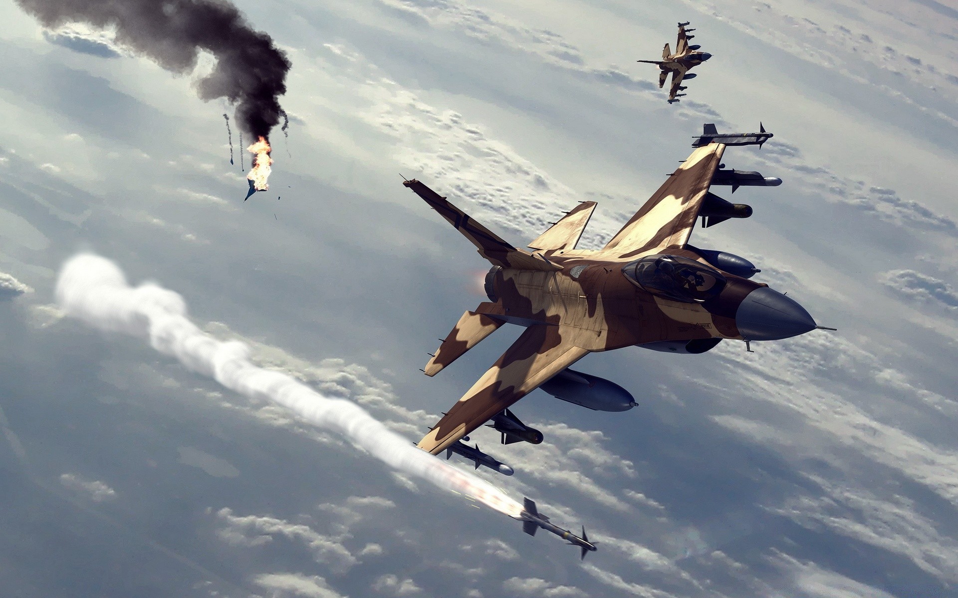 Batalha celestial com ataque de mísseis