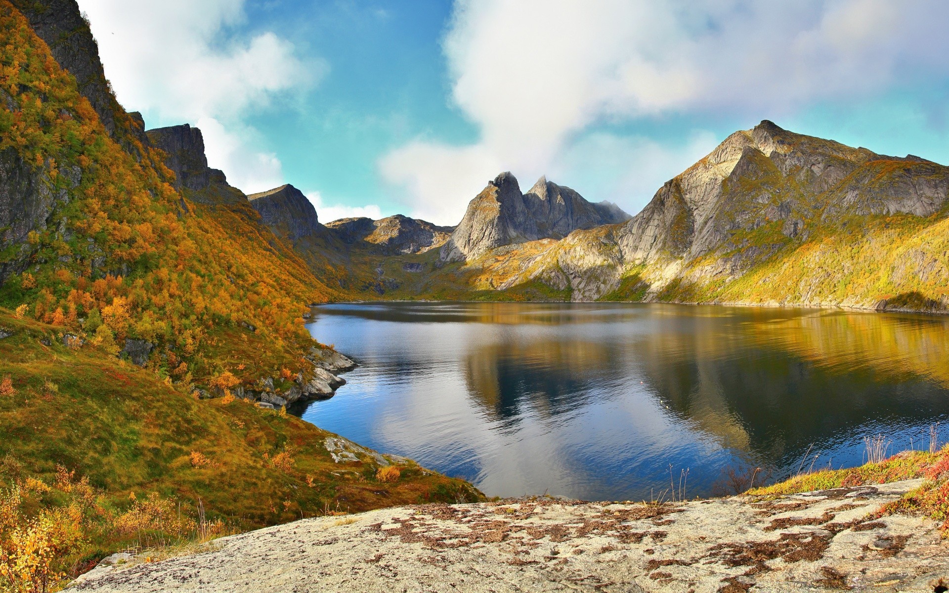 LAGO DE MONTANHA. PAISAGEM DE OUTONO