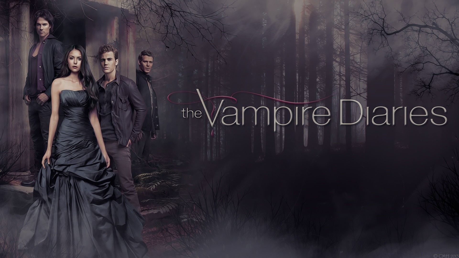 Um lobisomem vampiro e uma menina deitados em um campo contra um fundo de árvore ao pôr do sol