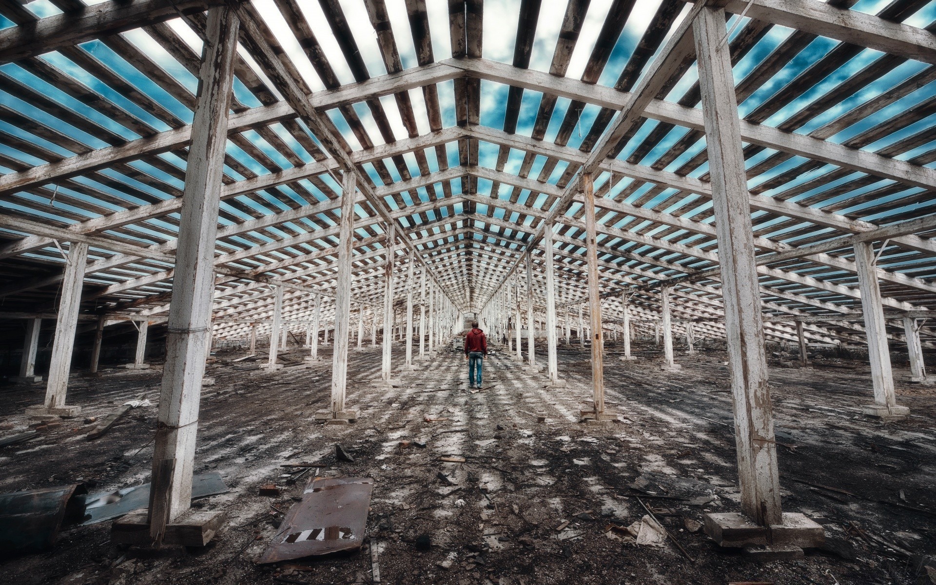 Edifício abandonado paisagem em estilo vintage