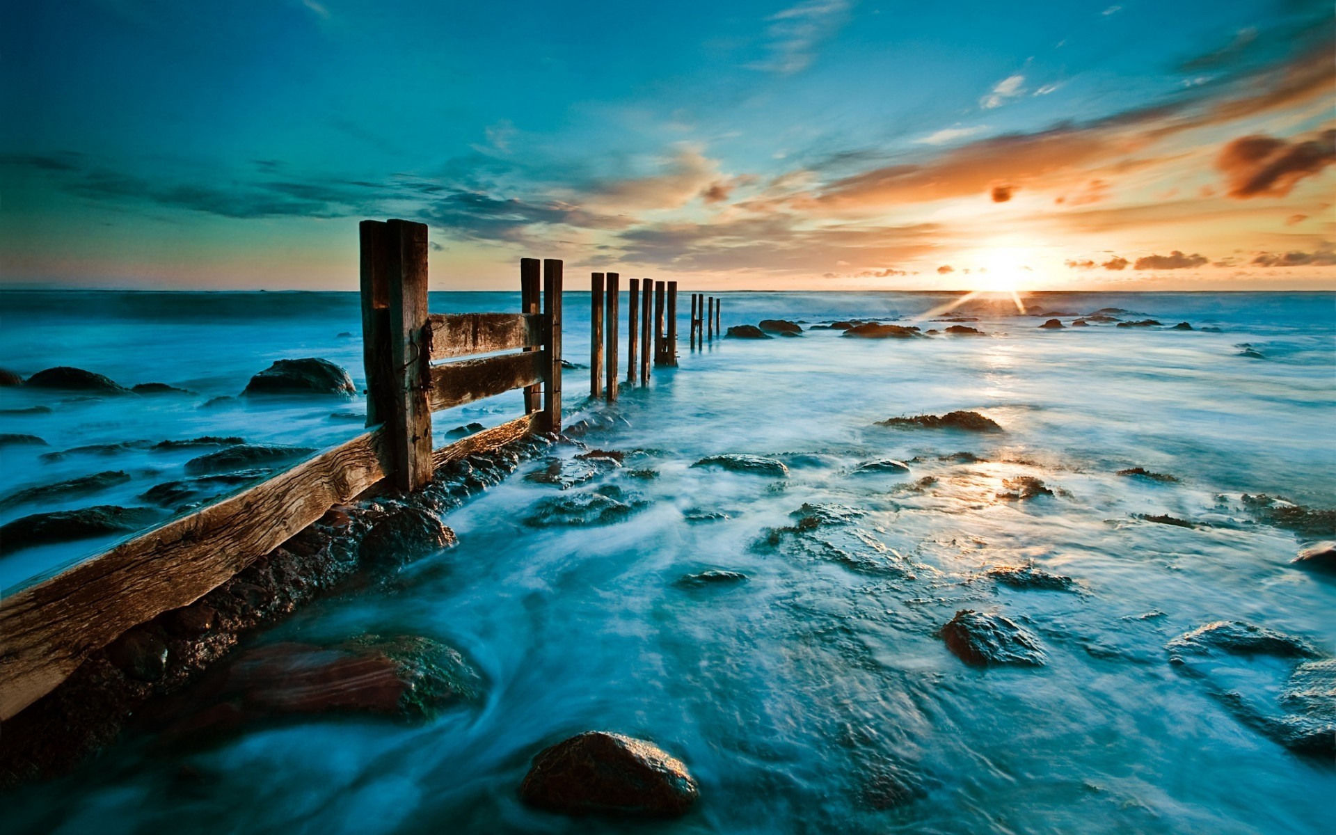 Belo pôr do sol à beira-mar