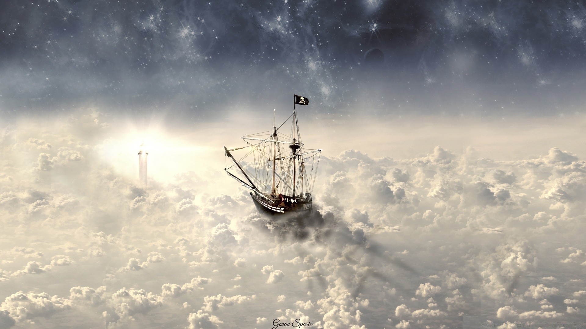 Navio fantasma nas nuvens