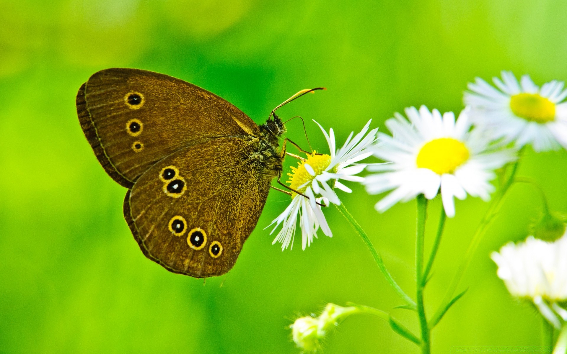 Camomila e borboleta no verão na natureza